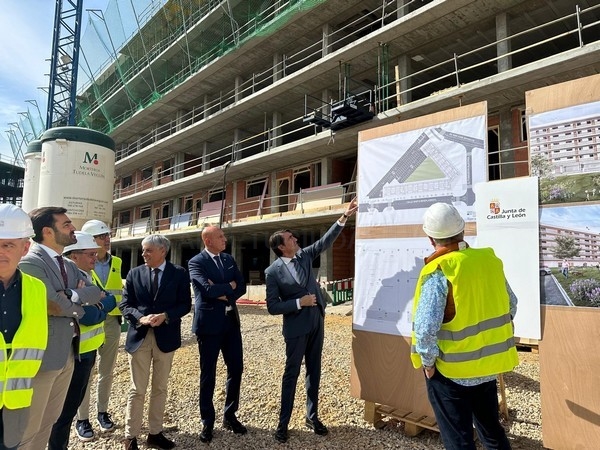 El consejero de Medio Ambiente, Vivienda y Ordenación del Territorio y el alcalde de León visitan las obras de una promoción de cien casas